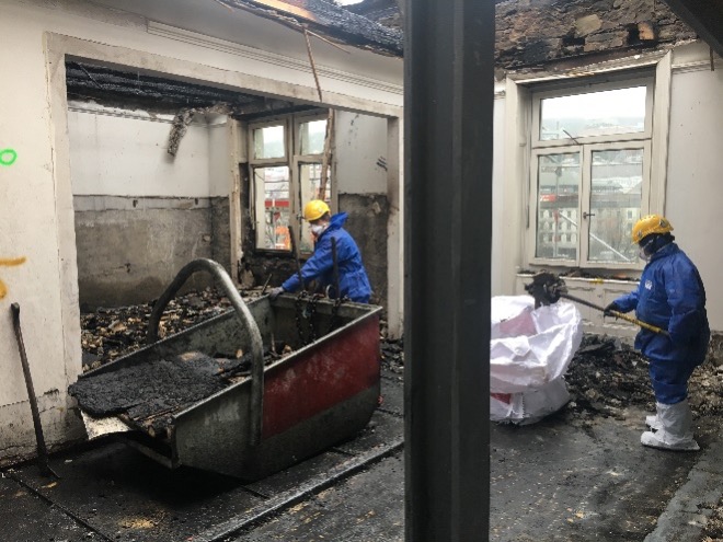 - Fase 3: Bonifica o demolizione della costruzione o dei locali danneggiati, e smaltimento dei rifiuti edili (ad esempio ad opera di studi di progettazione e di imprese)
